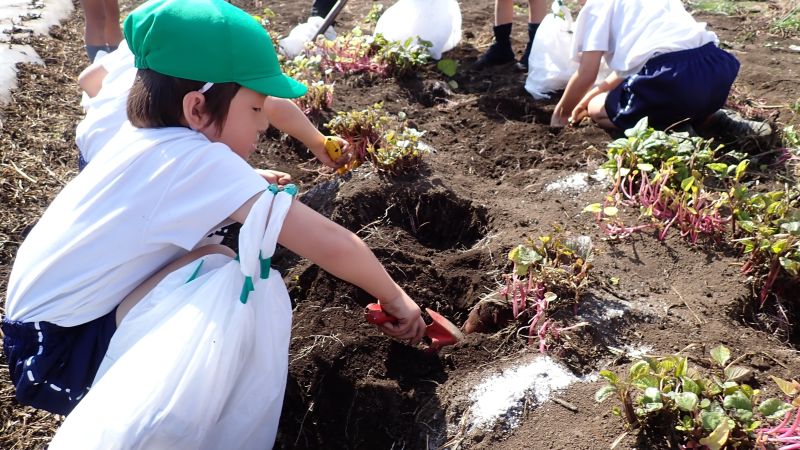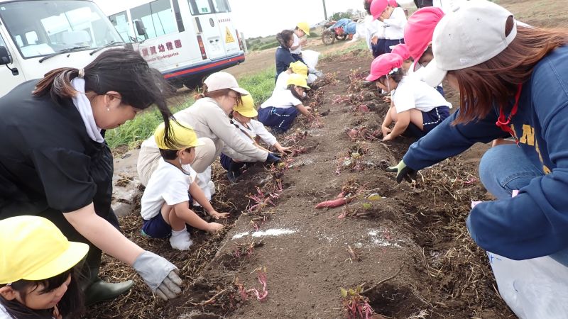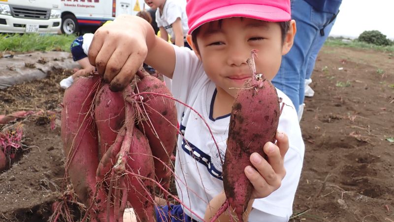 全ての子ども達が一生懸命いもを堀り、収穫の喜びを体感できました。台風等での天候の影響を心配しましたが、さつまいもを沢山収穫することができ、子ども達から伝わる満足感がとても印象的でした。