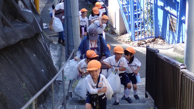 秋の実りの恵みに与って、今週は学年ごと津久井浜農園へといも掘り遠足に出掛けました。40分ほどのバスでの旅路!丘の上の広大な芋畑に到着です 。