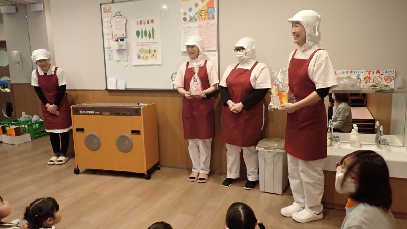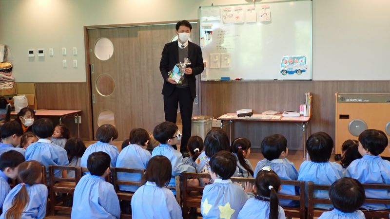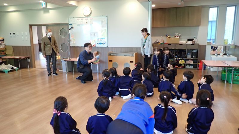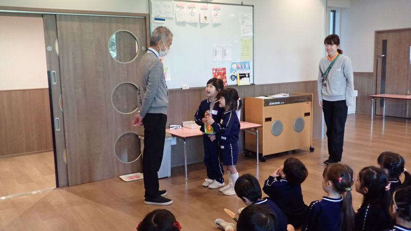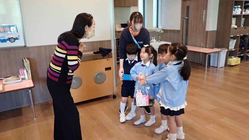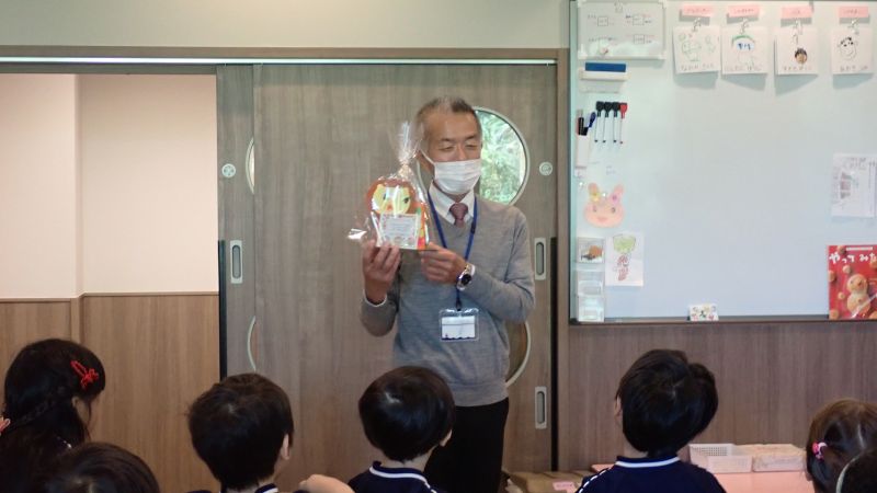 “勤労を尊び、生産をを祝い、国民が互いに感謝し合う日”とされている祝日ですが、子供たちにも周りに自分の為に色々なことをして下さっている方々がいることを改めて知り、感謝の気持ちをもってほしいと、園バスを運転してくれている運転手さんや必要な教材を運んでくださっている業者さん、美味しい給食を作ってくださる調理場の皆さんなどに皆で作ったペン立てを贈り、感謝の気持ちを伝えました。なかなか感謝の気持ちを伝える機会がなく、今回子供たちからのプレゼントに皆さん喜んで下さいました。日々感謝の気持ちを持つことは大切で、それが成長に繋がります。人と人との繋がりがあるからこそ、様々な活動が出来るのです。自分の周りの方々に「ありがとう」という素敵な言葉を自然と伝えられる人に育ってほしいと思います。