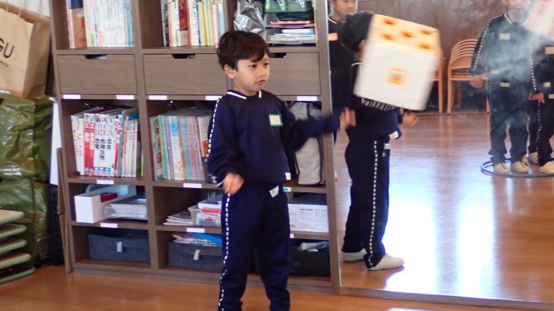 さてさて、今年の年長組の新年会の結果は…というと2対1で星組の優勝!肩を抱き合って大喜び。負けてしまった星組は、かなり悔しく肩を落としていました。勝負に勝ち負けはつきもの。それだけ真剣に取り組んだということですね。残り少ない年長組にとって良い思い出のひと時となったようです。