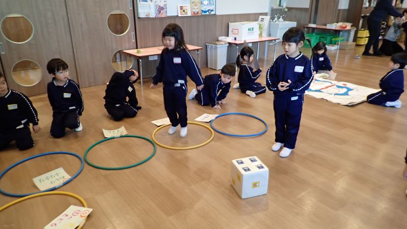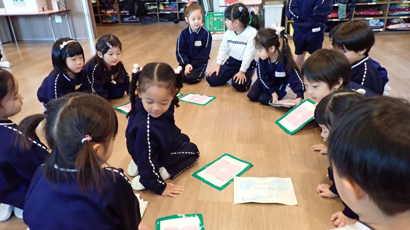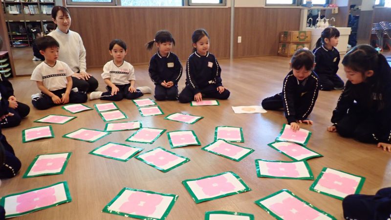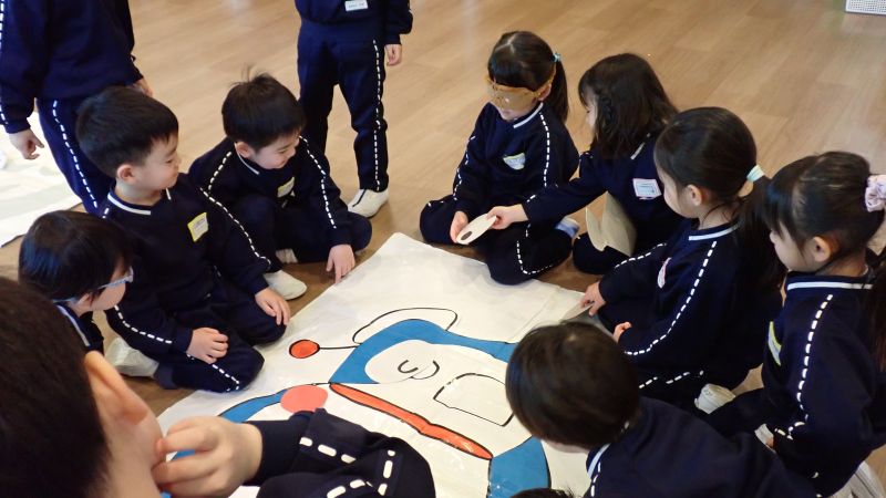 また、「福笑い」では、友達がチャレンジした結果をみて、皆で笑い合い和やかな雰囲気に包まれました。終始笑顔が溢れ、「笑う門には福来る」ということわざの如く、年中組に今年も沢山の笑顔と“福”が訪れる予感がしました。