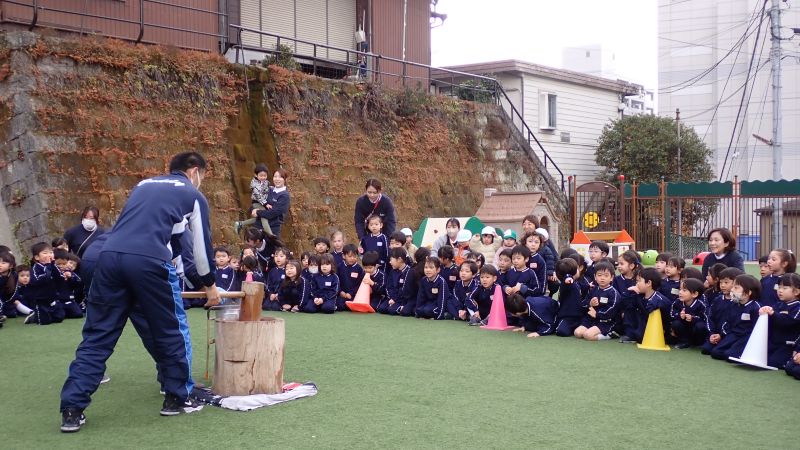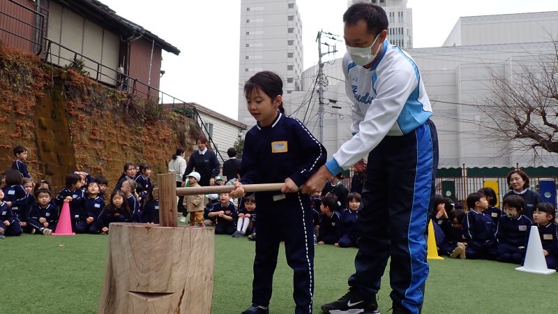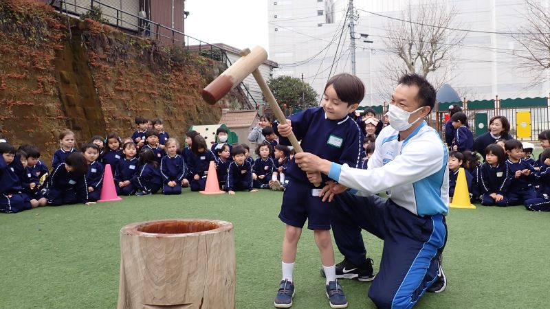 本日2月16日は横須賀幼稚園の123回目の創立記念日です。13日には、創立記念のお祝いでお餅つきが開催されました。