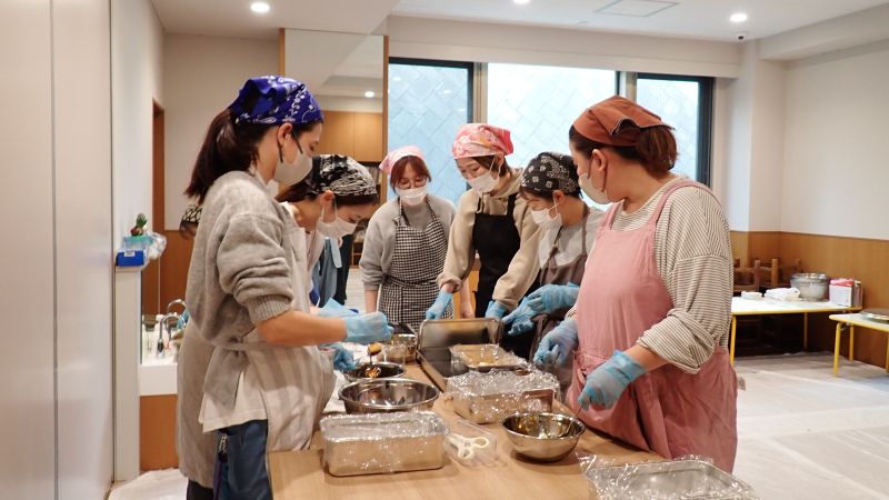 搗けたお餅は役員のお母様方のお力をお借りして、丸めて、みたらしのたれを絡めて下さいます。