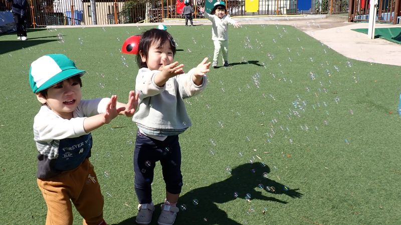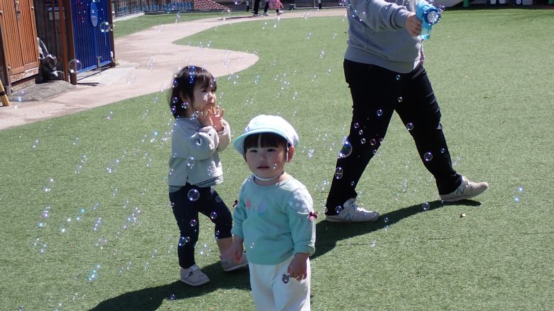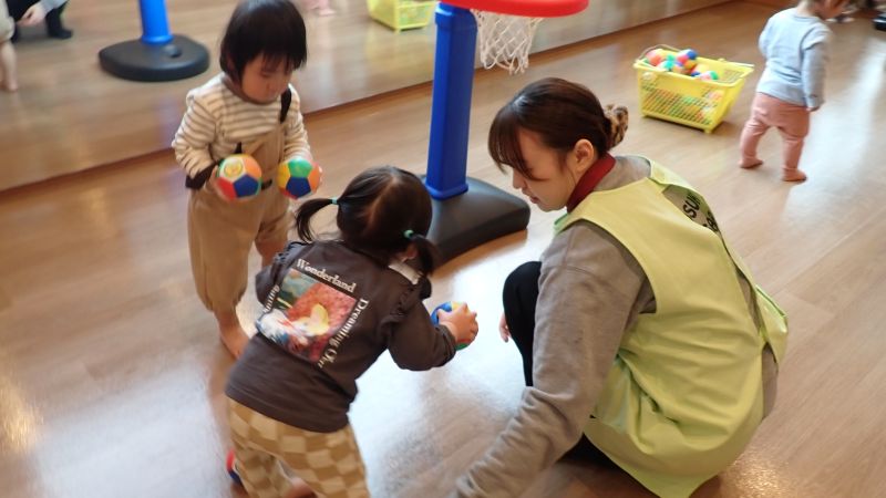 保育室には大きな泣き声が響き渡るかと思われましたが、それもほんの一時。保護者の方と離れる際には、不安そうな表情や涙が見られる姿もありましたが、抱っこをすると安心したように身を委ねたり、気になる玩具に手を伸ばしたりする様子が見られました。周囲の様子をじっと見つめながら少しずつ環境を受け入れていく姿や、ふとした瞬間に見せてくれる笑顔もあり、一人ひとりが自分のペースで新しい生活の一歩を踏み出していることを感じました。