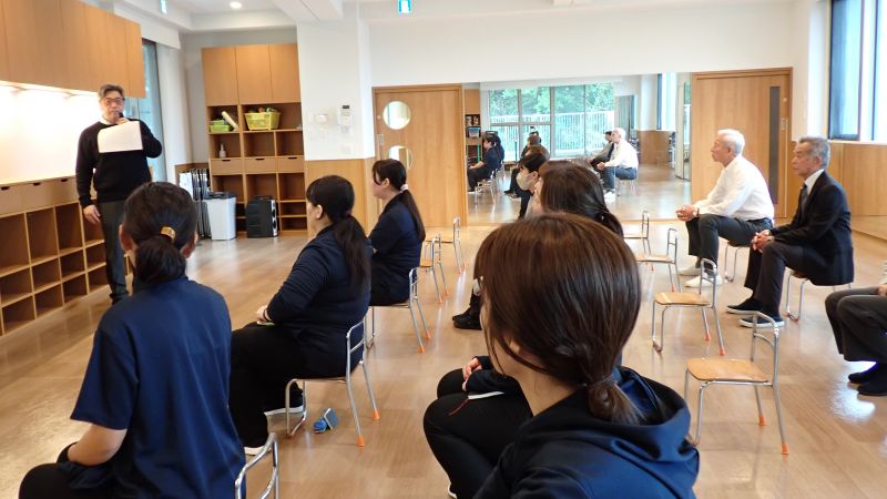 さて、年度初日という事で、ホールでは職員顔合わせを行いました。休暇中の預かり保育やふたば組は通常通りの保育を行っている為、入れ替わりで一人ひとりが2026年度の抱負を述べました。